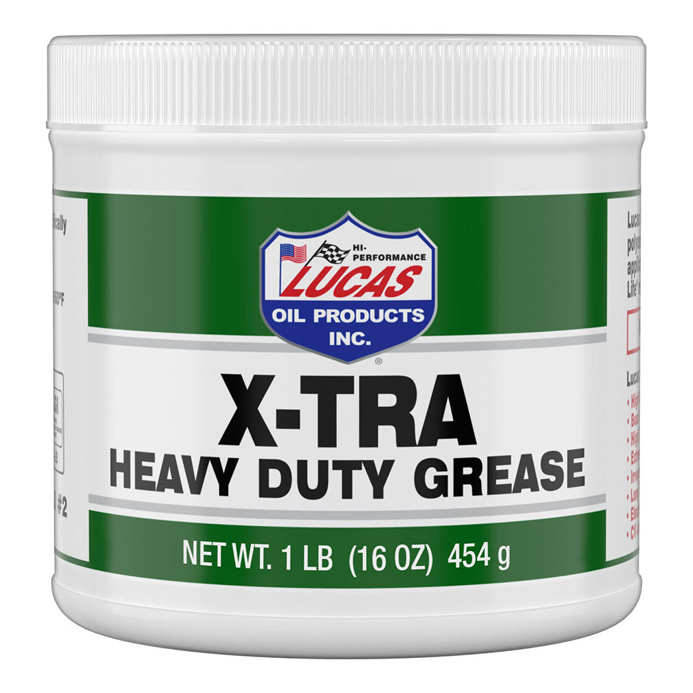 Lucas X-Tra Heavy Duty Grease has exceptional extreme pressure characteristics and excellent water resistance. It's recommended for steel mills, off-road equipment, fleet and commercial applications. It has excellent mobility at low temperatures. It lasts up to three times longer than ordinary grease and it's excellent for high speed bearings.