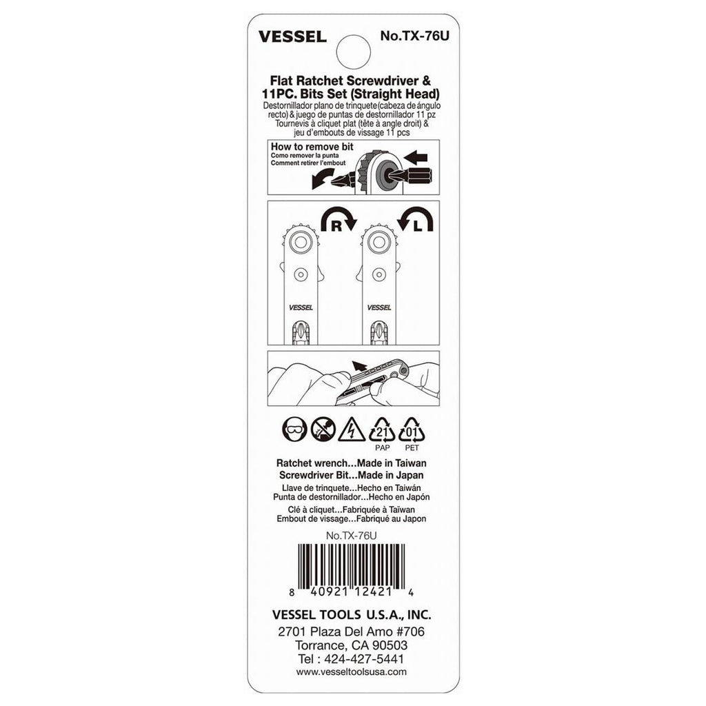 Vessel Low-profile Flat Plate Ratchet Screwdriver Set (straight Type) No.tx-76u