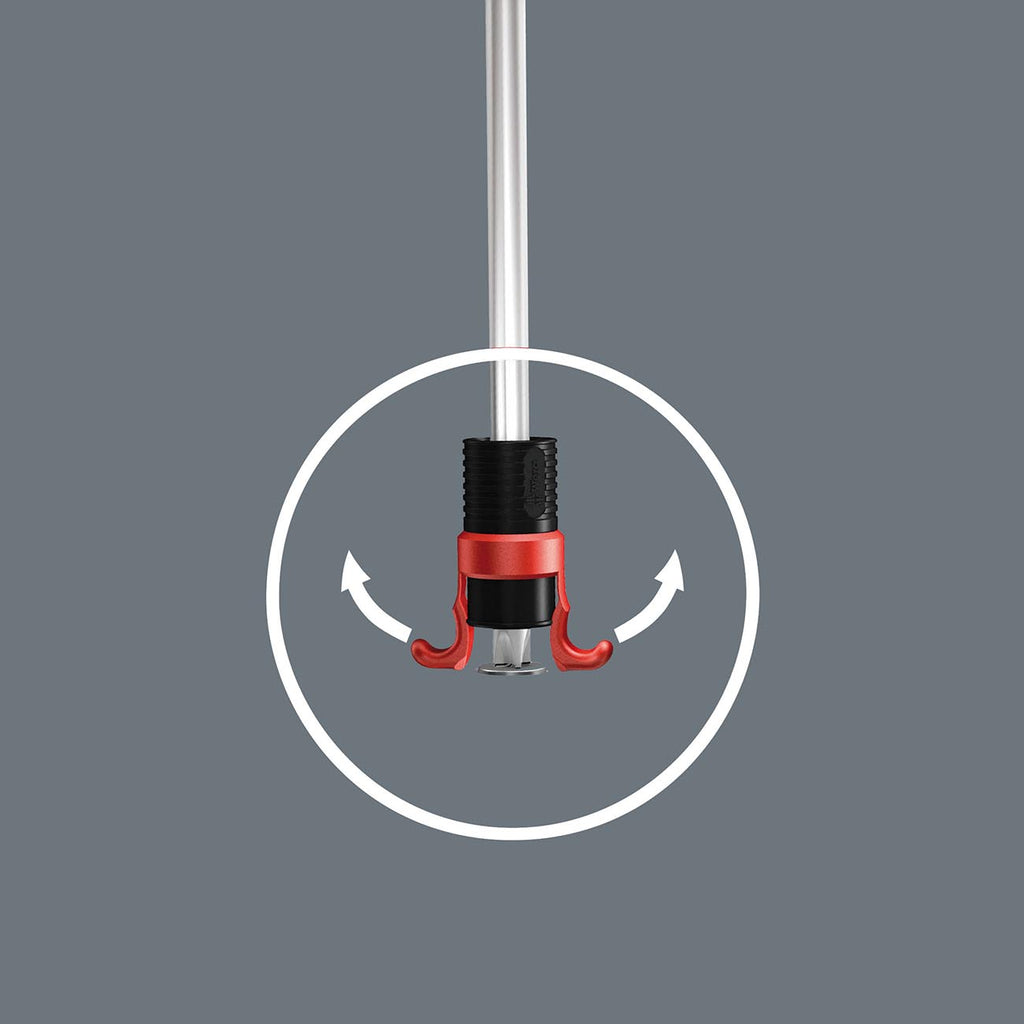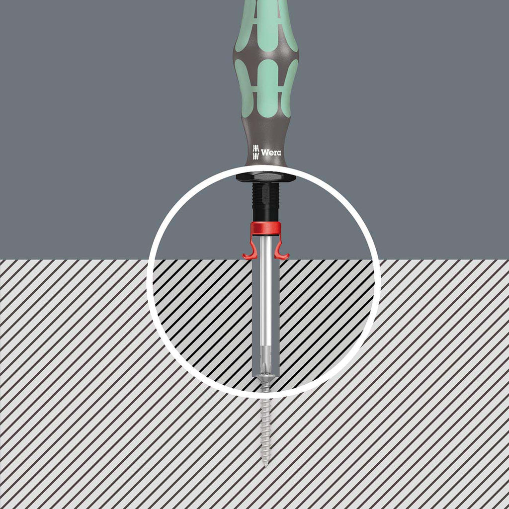Wera screw gripper: Attachment tool with gripping function for screws. Holds all screw profiles securely on the tool. The screw gripper can be pushed upwards on the blade while screwdriving, so that it does not get in the way, even in deeper screwdriving situation