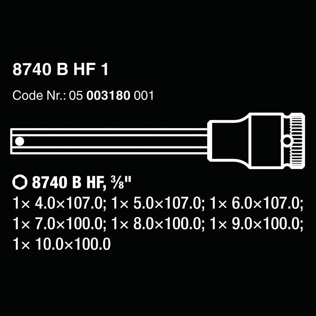 Wera 8740 B HF 1 Zyklop Metric 3/8"e; Bit Driver Socket Set with Holding Function (7-Piece Set)