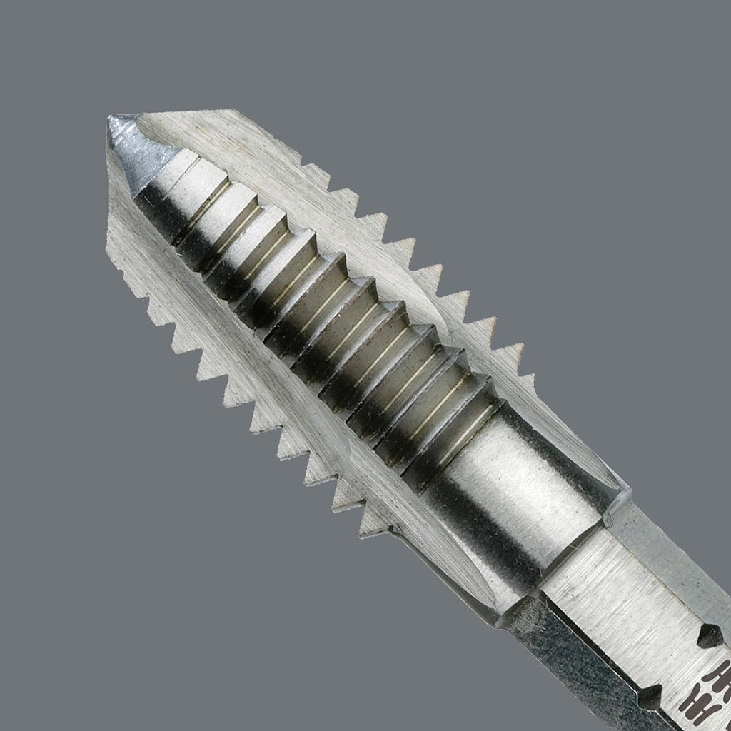 7-piece tapping drill bit set in a stable plastic box for the cutting of metric threads. The hexagonal bit shaft ensures very good power transfer. The finely-tuned material elasticity provides for great durability. Perfect chip removal and a low tilt risk. The Rapidaptor ensures rapid bit change without any extra tools. 1/4"e; hexagon, suitable for holders as per DIN ISO 1173-D 6.3.