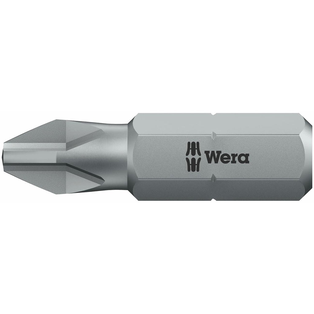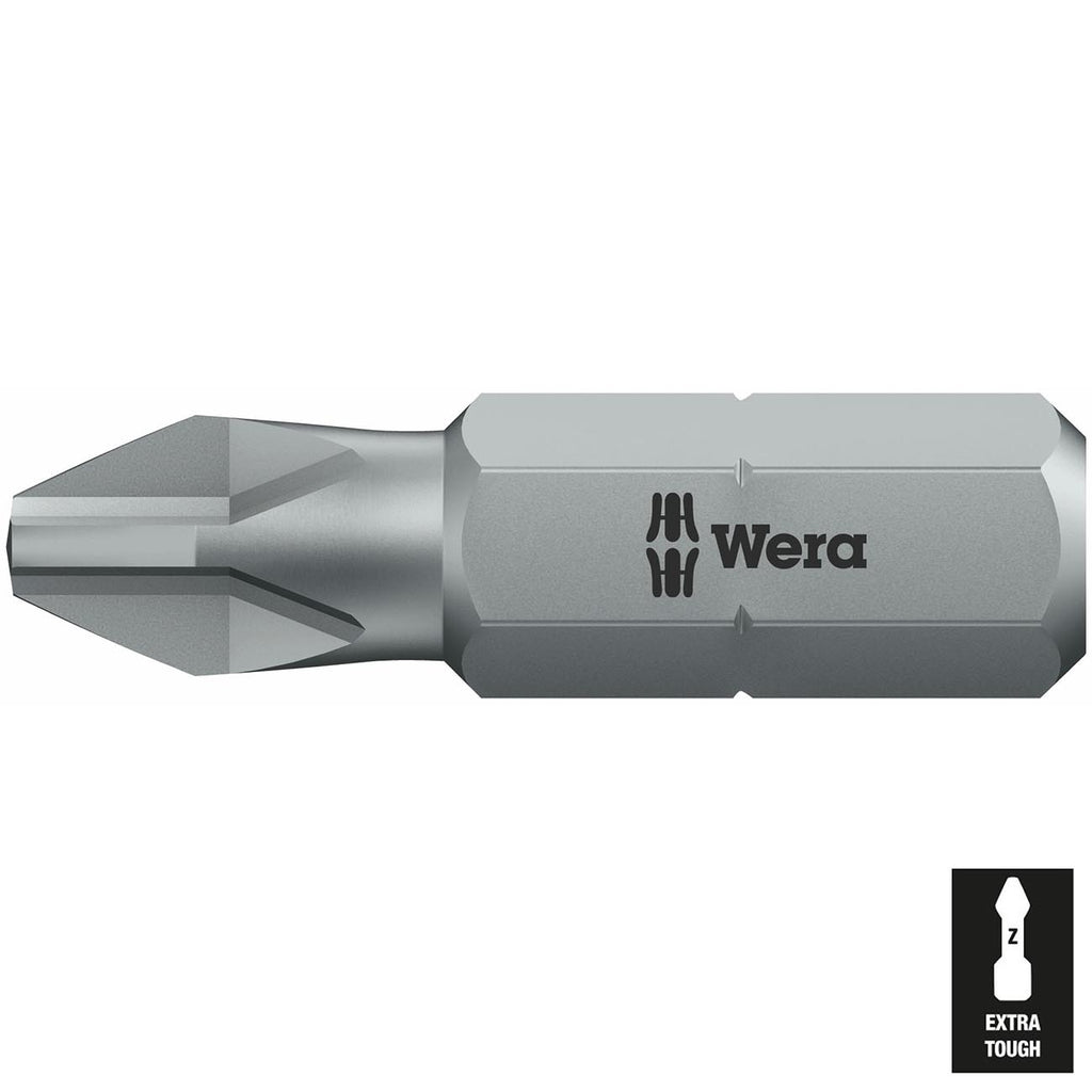 Tough Wera bits for Phillips screws, for universal use. 1/4"e; hexagonal, suitable for holders as per DIN ISO 1173-D 6.3.